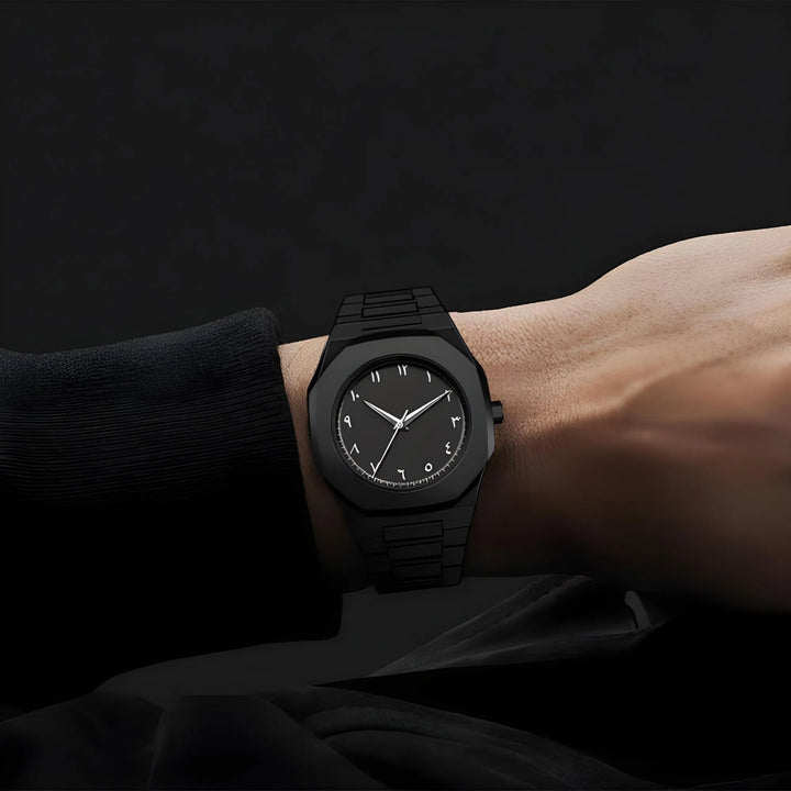 ELEVATE YOUR STYLE WITH TIMELESS ELEGANCE Step up your wrist game with the Black Arabic Aura Watch, exclusively at Infaal Decor.Store. Designed for the modern man who blends tradition with sophistication,...