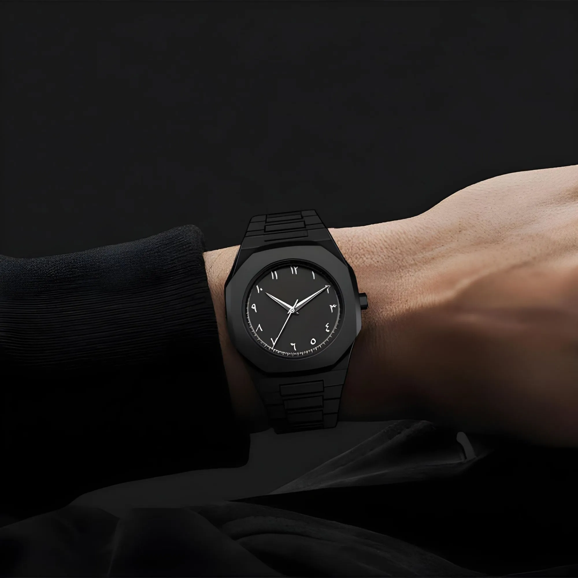 Step up your wrist game with the Black Arabic Aura Watch, exclusively at Infaal Decor.Store. Designed for the modern man who blends tradition with sophistication, this luxury timepiece fuses a bold all-black aesthetic with distinctive Arabic numerals, creating a standout look that’s both cultural and contemporary. Whether you’re dressing for a wedding, a boardroom, or a casual outing, this watch is your perfect companion.
