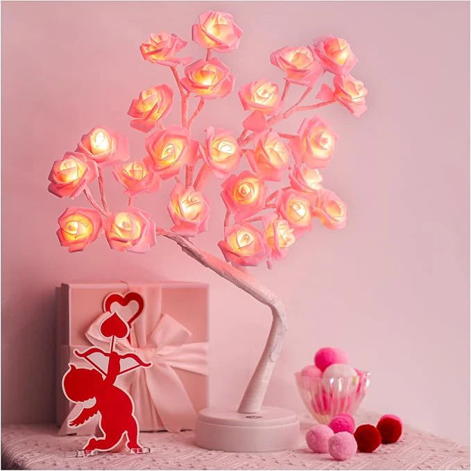 Pink Rose Flower Bedside lamp Princess Table lamp Flower Lamp for Nightstand Desk Light for Bedroom Women Girl Dating Gifts Party Wedding Decor Living Room Restaurant Office