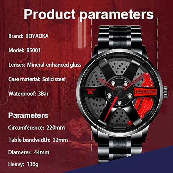 - - If you're looking for a new wristwatch that combines style with functionality, then the Car Wheel Watch should definitely be on your list of must-haves! Its scratch resistant coating and waterproof construction make it perfect for everyday use - no matter what kind of lifestyle you lead.